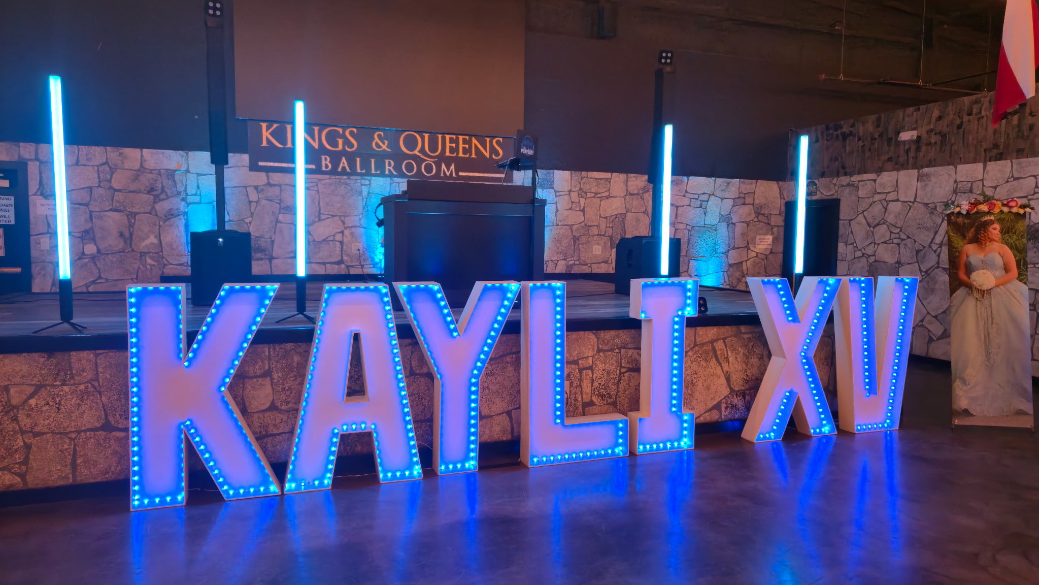 Make your celebration truly personal with custom monograms and names illuminated in style. A stunning visual statement for weddings, quinceañeras, and milestone events.